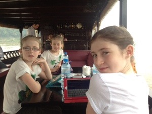 We had booked a private boat because I thought it would be easier with children than sharing a boat with either partying backpackers or an organised golden years trip. So we ended up with a crew of 7 looking after the six of us. Our boat is the white one in the bottom right photo.
