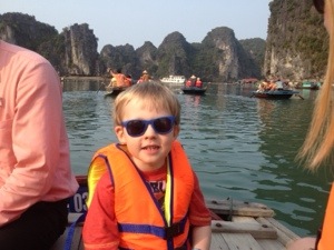 We visited a floating village, watched the sunset, had a a cooking class, a children’s meal and then when they went to bed an adults meal. The next morning after watching the sunrise from my balcony we kayaked through some caves. Hard work and probably not very sensible with a three year old in my kayak but we all wore lift jackets. We rounded it off with a tai chi class on the sundeck and a brunch before returning to land and a long trip back to Hanoi.
